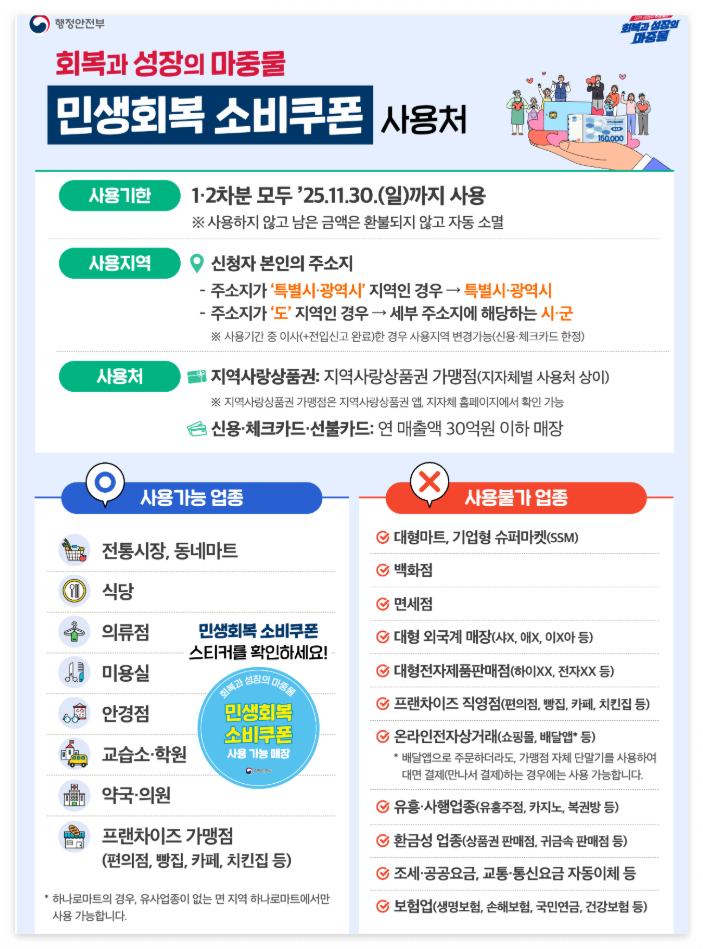 - 관할 내 소상공인 매장에서만 사용 가능