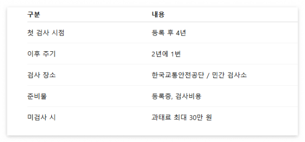 지금 내 차량 등록증을 꺼내 첫 검사일을 확인해 보세요. 놓치면 벌금, 챙기면 안전입니다!