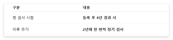 경유 차량, LPG 차량, 택시 등은 1~2년 사이 주기로 더 자주 받아야 하니 별도 확인이 필요합니다.