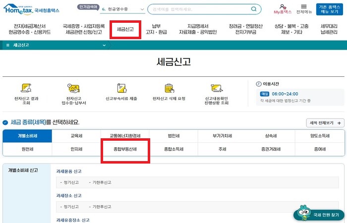 * 홈텍스>세금신고>종합부동산세>간이세액계산 순으로 알아볼 수 있습니다.